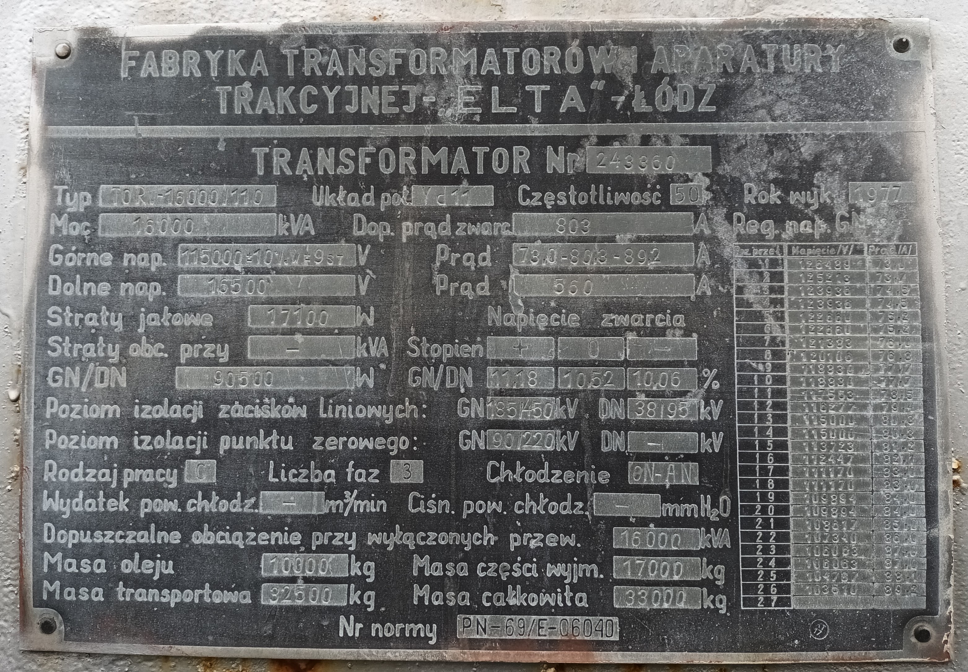 Sprzedaż wyeksploatowanego transformatora WN/SN 110/15 kV o mocy 16 MVA